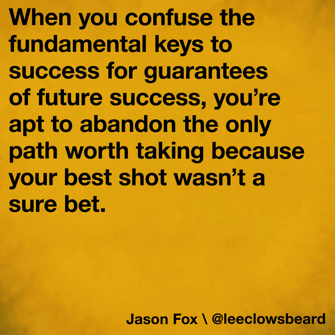 When you confuse the fundamental keys to success for guarantees of future success, you’re apt to abandon the only path worth taking because your best shot wasn’t a sure bet.
