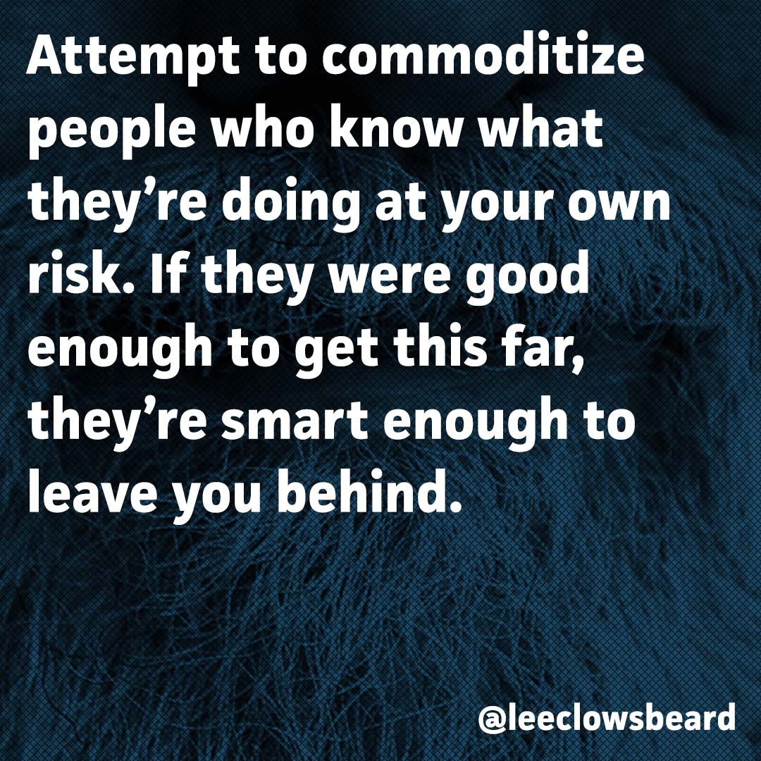 Attempt to commoditize people who know what they’re doing at your own risk. If they were good enough to get this far, they’re smart enough to leave you behind.