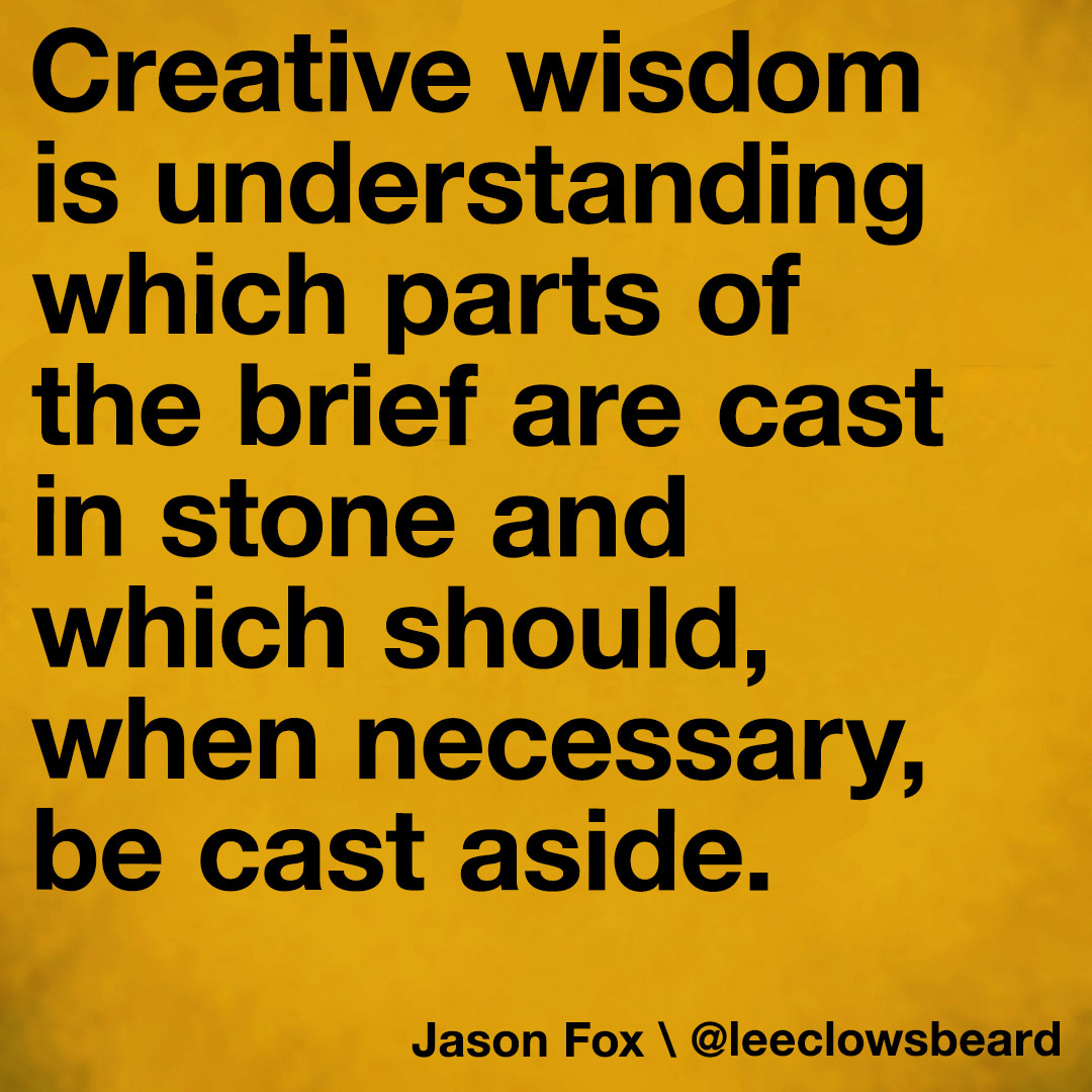 Creative wisdom is understanding which parts of the brief are cast in stone and which should, when necessary, be cast aside.