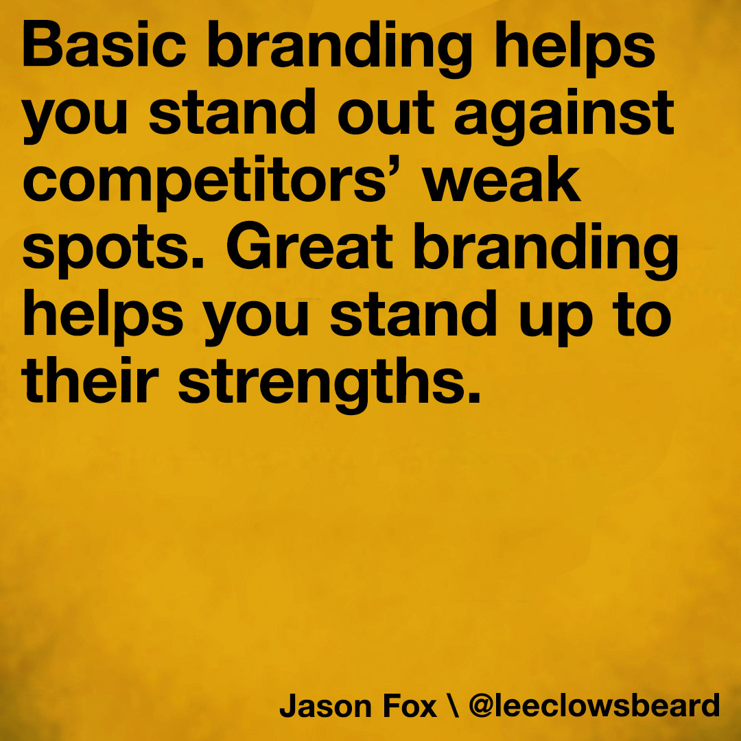 Basic branding helps you stand out against competitors’ weak spots. Great branding helps you stand up to their strengths.