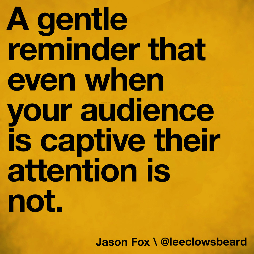 A gentle reminder that even when your audience is captive their attention is not.