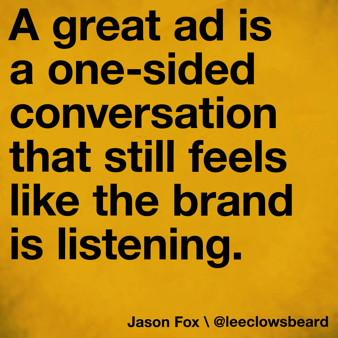 A great ad is a one-sided conversation that still feels like the brand is listening.