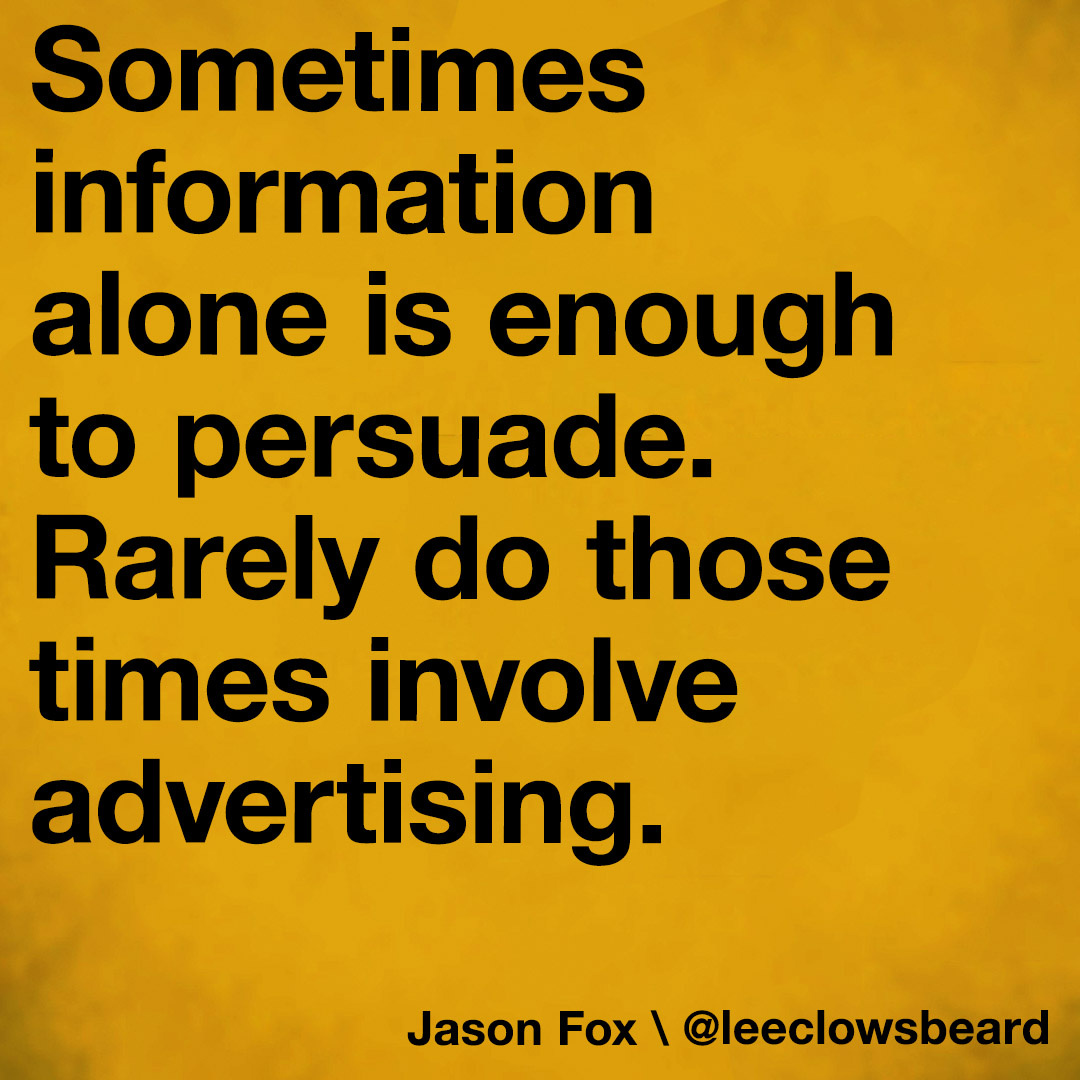 Sometimes information alone is enough to persuade. Rarely do those times involve advertising.