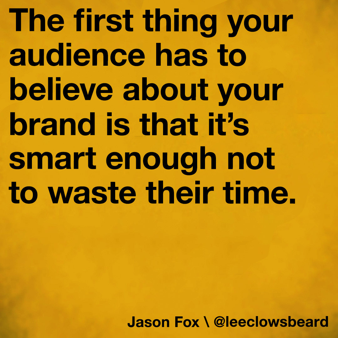 The first thing your audience has to believe about your brand is that it’s smart enough not to waste their time.